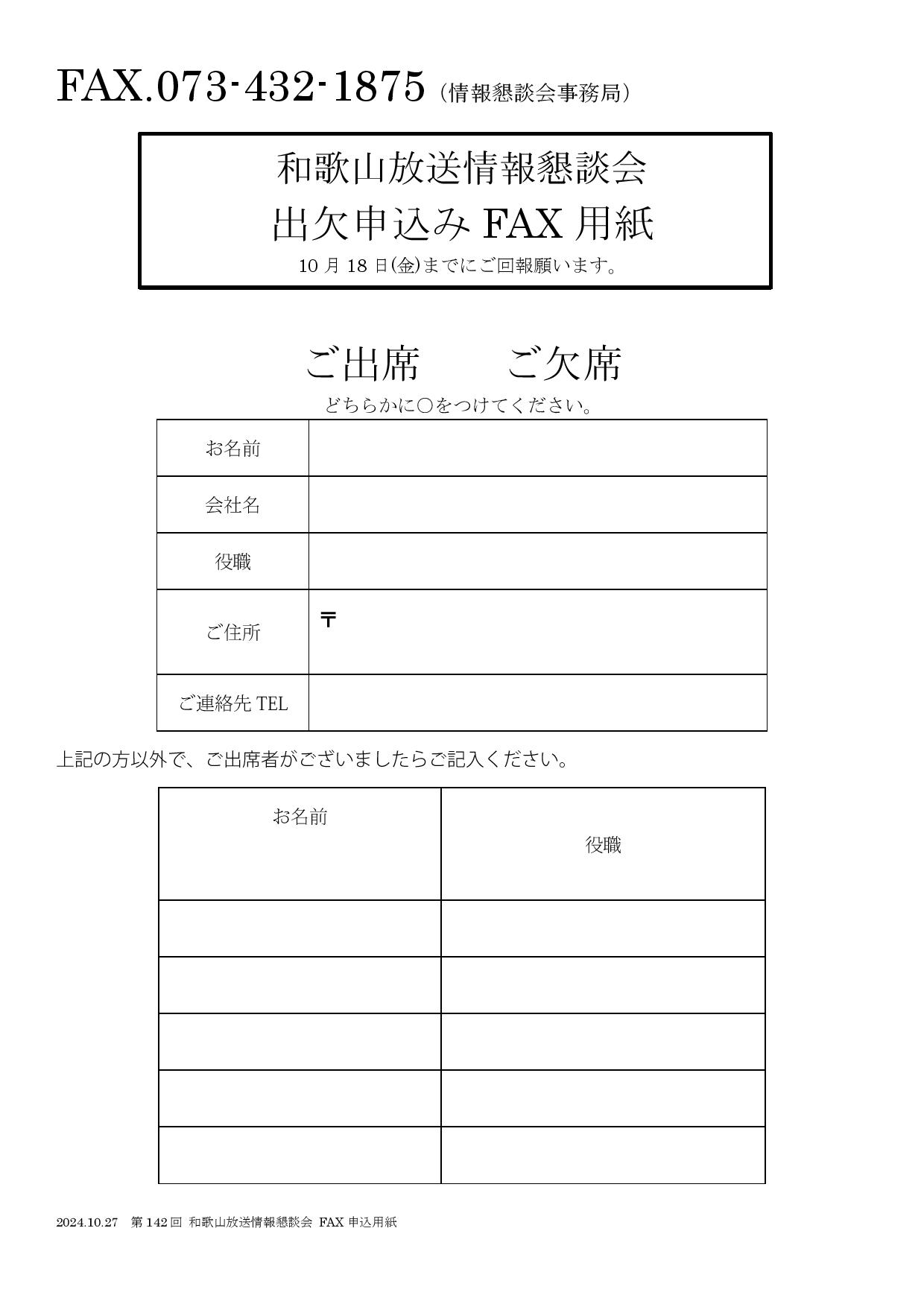 2024.10.29 和歌山放送情報懇談会「国土強靱化と感染症・パンデミック対策」 出欠申込み用紙 X Facebook0 はてブ0 コピー 2024.10.152024.10.16 2024.10.29 和歌山放送情報懇談会「国土強靱化と感染症・パンデミック対策」 出欠申込み用紙42 Downloads申込み用紙ダウンロード (PDF形式、1ページ) ダウンロード